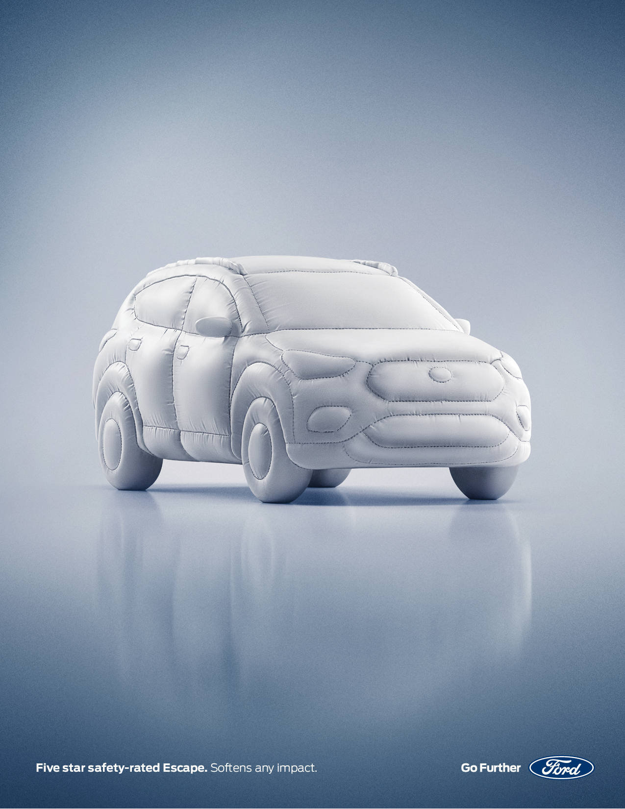 The five star safety-rated Ford Escape is an SUV that's safe for everyone inside. In crash and rollover tests, it outperforms competitors. On the road, it softens any impact – from potholes to the worst collisions. To illustrate this, we created an Escape from a giant airbag.